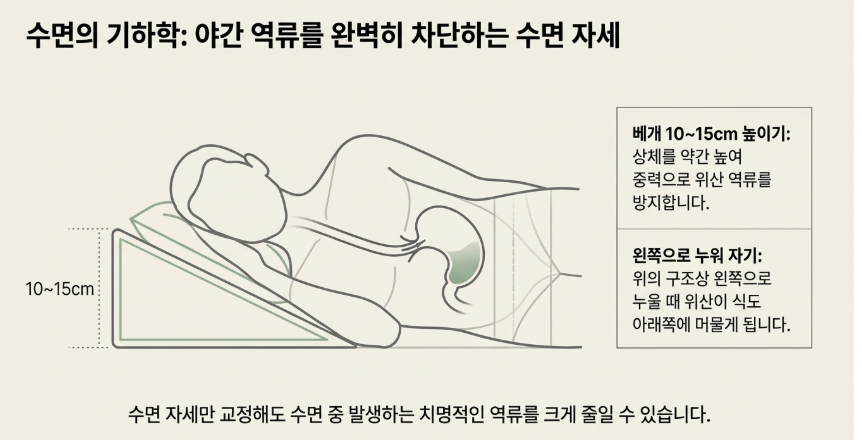 수면 습관만 바꿔도 야간 역류가 줄어듭니다.